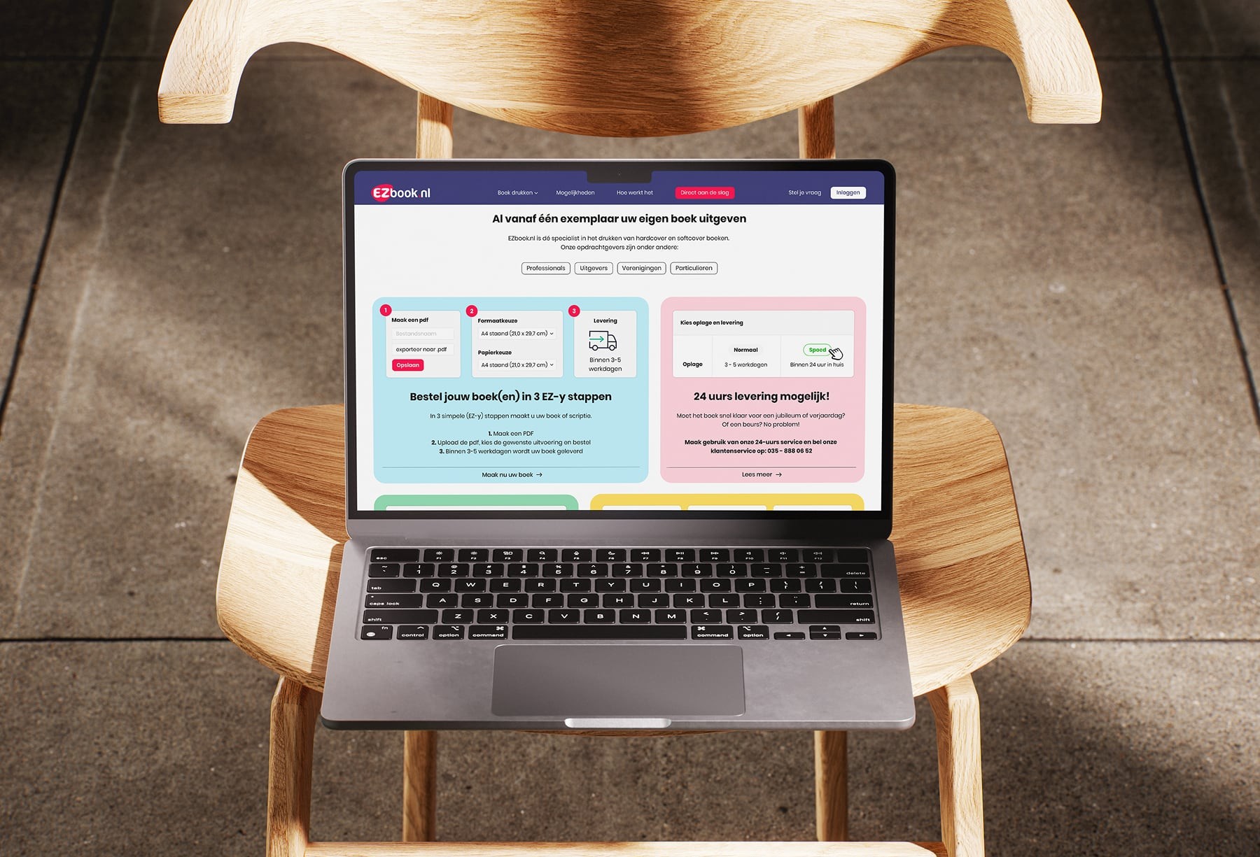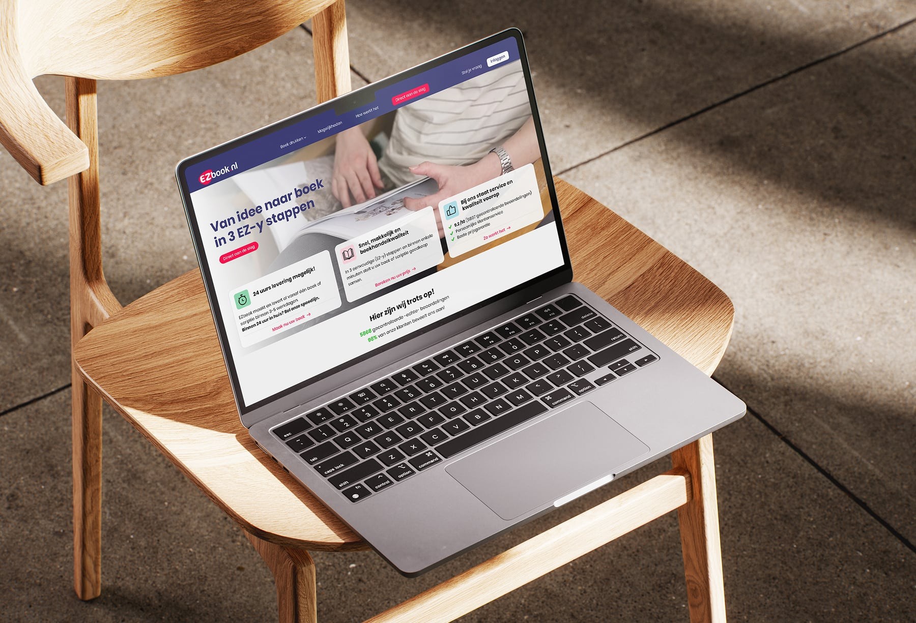 Na jaren van sterke groei wilde EZbook.nl haar merkidentiteit vernieuwen om beter aan te sluiten bij de hedendaagse gebruiker. De bestaande uitstraling was functioneel maar miste emotie en eigentijdse aantrekkingskracht. De uitdaging lag in het vertalen van de kernwaarden, eenvoud, kwaliteit en betrouwbaarheid, naar een moderne, herkenbare identiteit met een duidelijke merkbelofte. Daarnaast moest de communicatie persoonlijker en visueel consistenter worden, met een tone-of-voice die zowel creatieve makers als zakelijke klanten aanspreekt. Ook de website vroeg om een vernieuwde gebruikerservaring, waarin snelheid, gebruiksgemak en conversie centraal staan. Kortom: een toekomstbestendige basis voor verdere groei en merkbeleving.