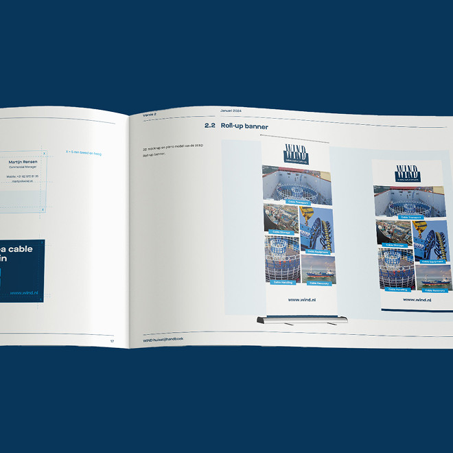 We ontwikkelden een eigentijdse merkidentiteit waarin kracht, innovatie en precisie samenkomen. Van logo en kleurenpalet tot typografie en beeldtaal: alles draagt bij aan een onderscheidende, consistente uitstraling. Deze nieuwe visuele identiteit vertaalden we naar een moderne website, ontworpen en technisch gerealiseerd voor optimale performance en gebruiksvriendelijkheid. Daarnaast verzorgden we de vormgeving en productie van diverse productbrochures en merchandise, waarmee het vernieuwde merk zich op elk niveau sterk en herkenbaar presenteert. Het resultaat: een toekomstbestendige identiteit die WIND stevig positioneert binnen de energietransitie.